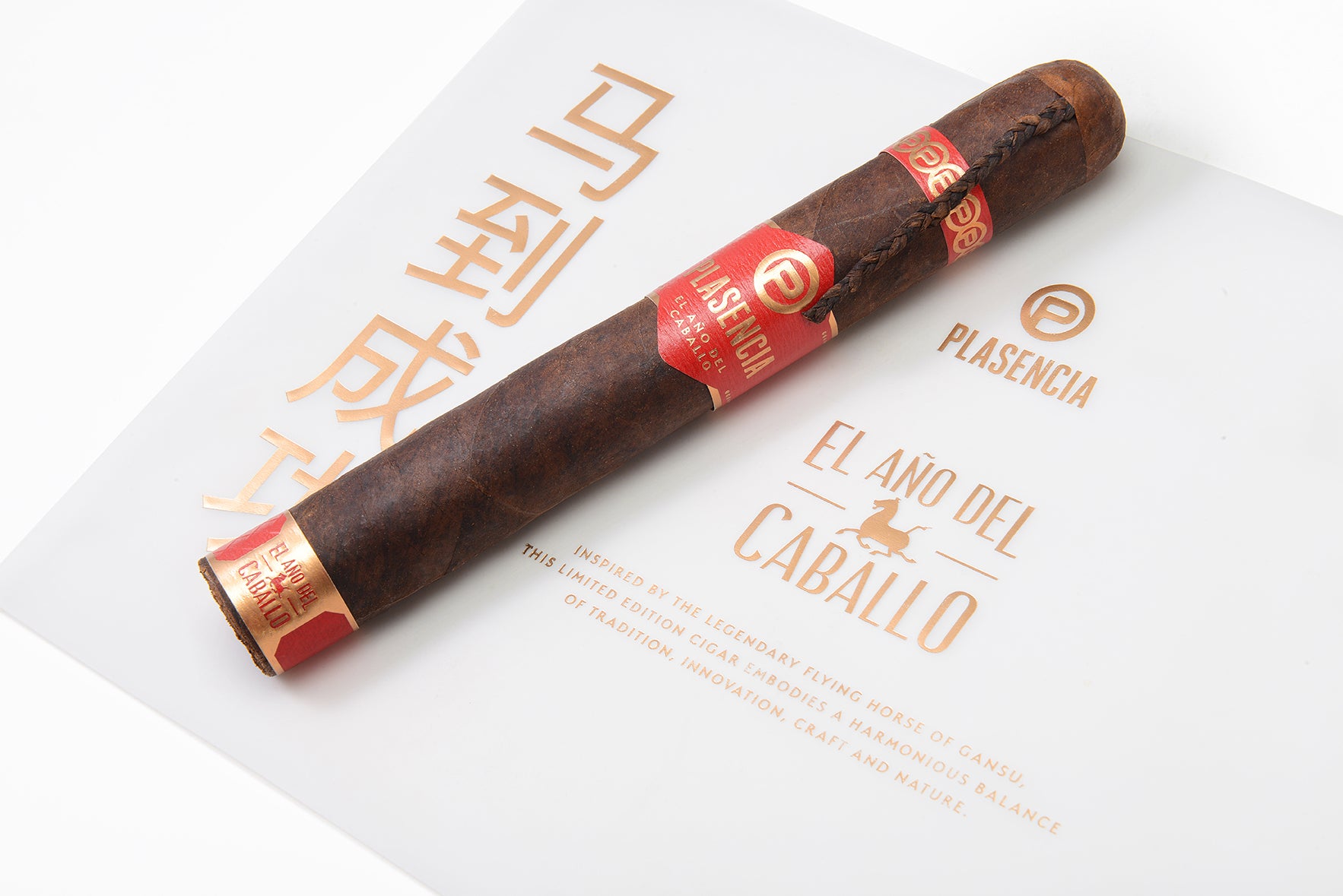The limited-edition, single size is aptly named Parejo Gordo, and it measures 7 inches by 58 ring gauge. What makes it distinct is the long, braided tail extending from the cap. Each cigar is topped with a long piece of braided tobacco that resembles a horse’s plaited (or braided) mane or tail. According to the company, making the braid is an elaborate process that involves a third roller just to make this particular cap properly.