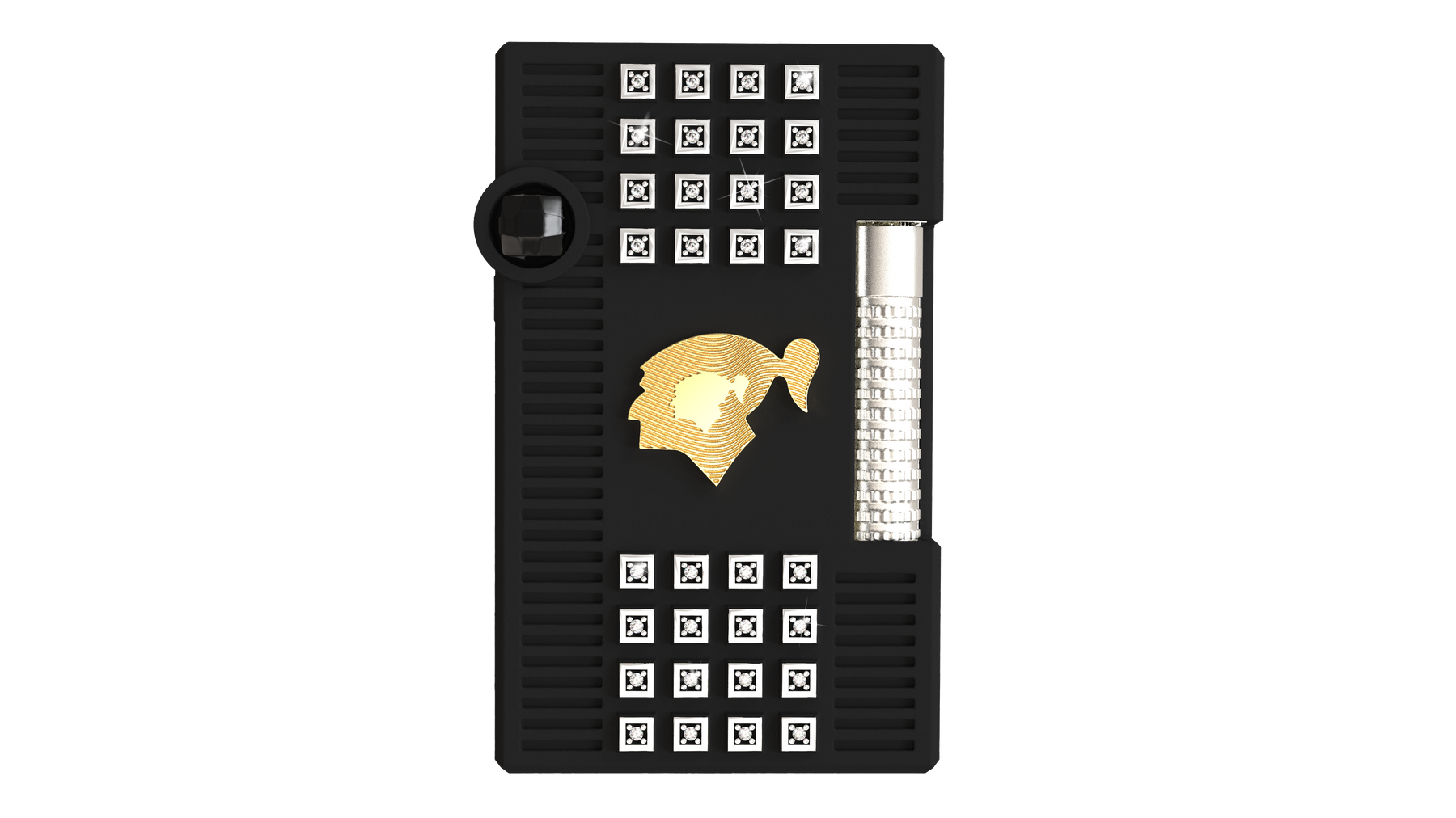 Adorned with 84 brilliant-cut diamonds (0.84 carats) and two black onyx stones (5 carats), the lighter radiates luxury. Its structure features yellow gold plating, palladium-plated accents, and black cerakote varnishing, forming an intricate pattern that pays homage to the iconic Behike cigar band. The yellow gold Behike logo and palladium-plated signature ignition roller emphasize refinement, while its dual ignition system offers both an adjustable double soft flame and a torch flame for versatility.