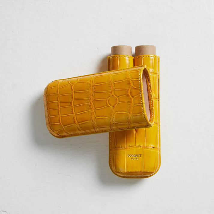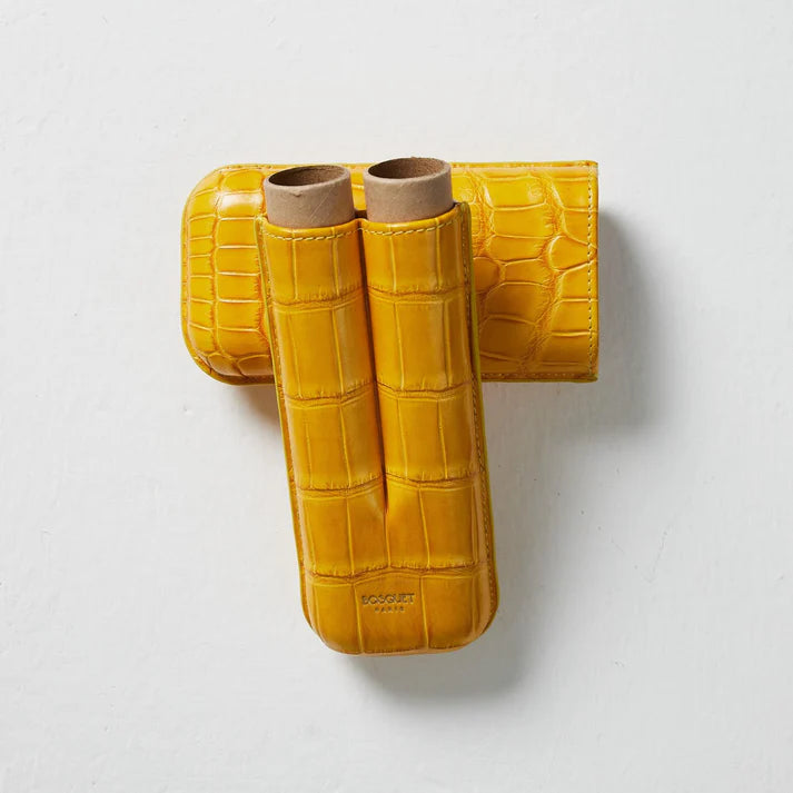 Bosquet Paris Genuine Crocodile Leather Cigar Case Yellow Rectangular - 2 Finger